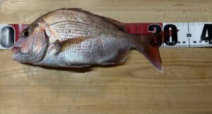 そこからポイントを変えて真鯛狙いへ何とか30cmの真鯛を1匹釣りましたがあまり反応は良くありませんでした。