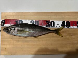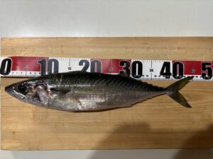 それに続くように40cm越えのアジも釣れ出しようやく私にも大きめのアジ、サバが掛かり一時は40cmを超えるサバが入れ食い状態に